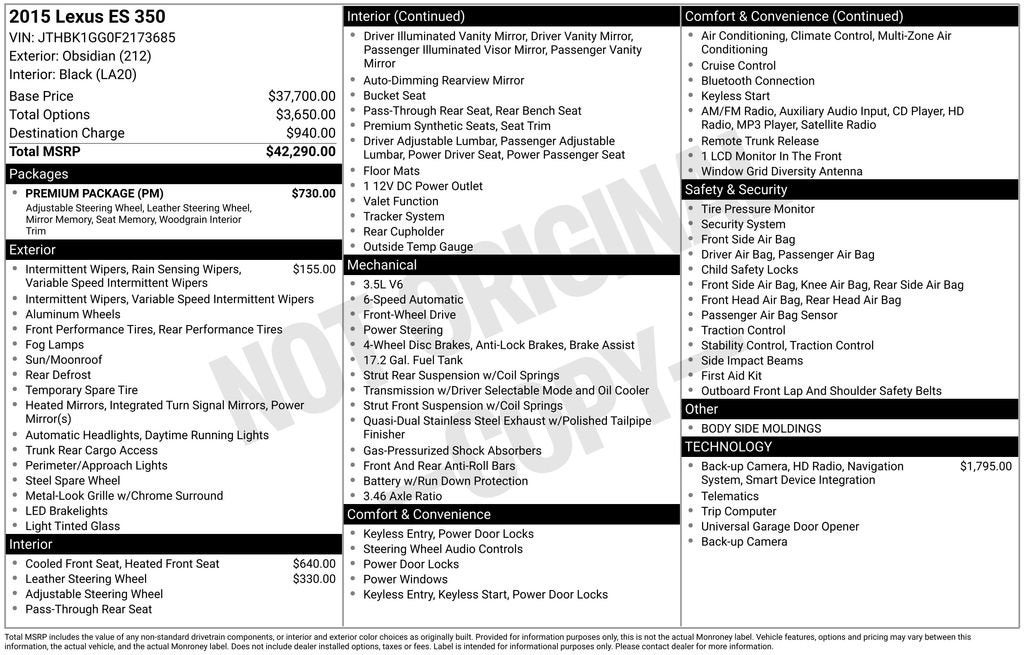 2015 Lexus ES 350 Crafted Line