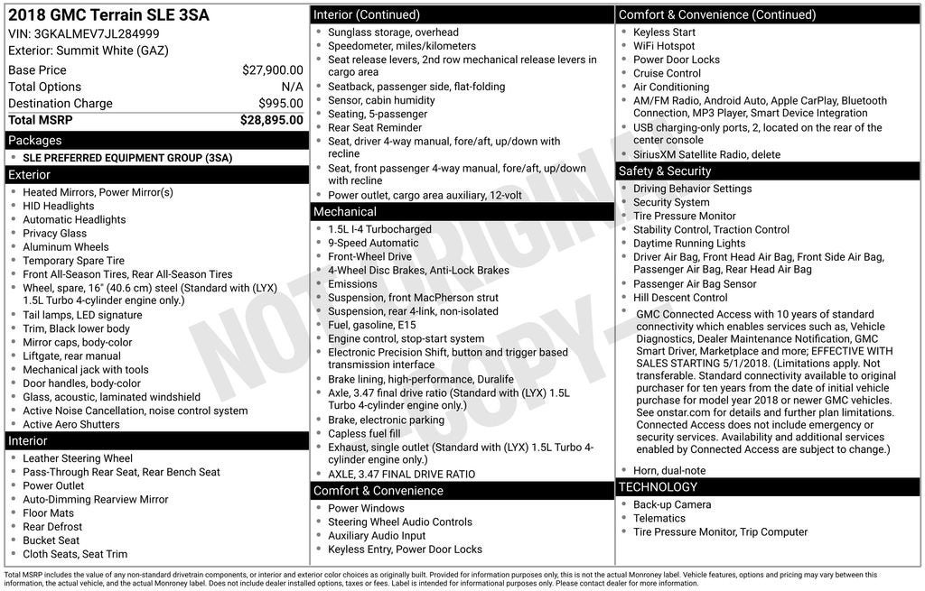 **For Sale: 2018 GMC Terrain SLE with features such as *Bluetooth®/Hands free phone*, *Cruise control/Speed control*, *Apple car play/Android audio*, *Keyless open*, *Rear view camera*, and much more listed below!!**