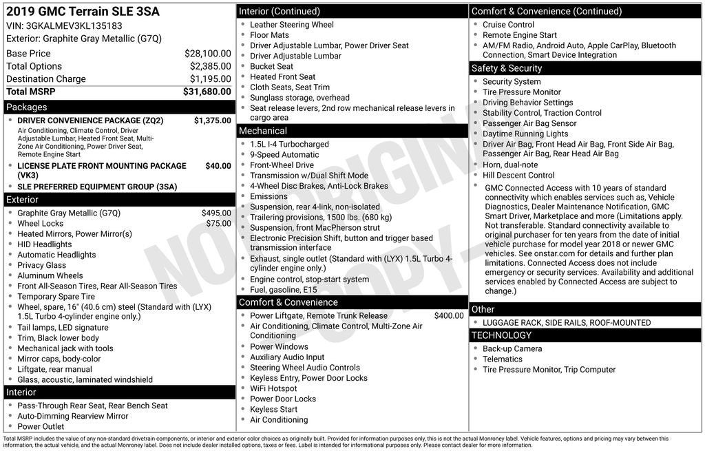 CarBravo 2019 GMC Terrain SLE