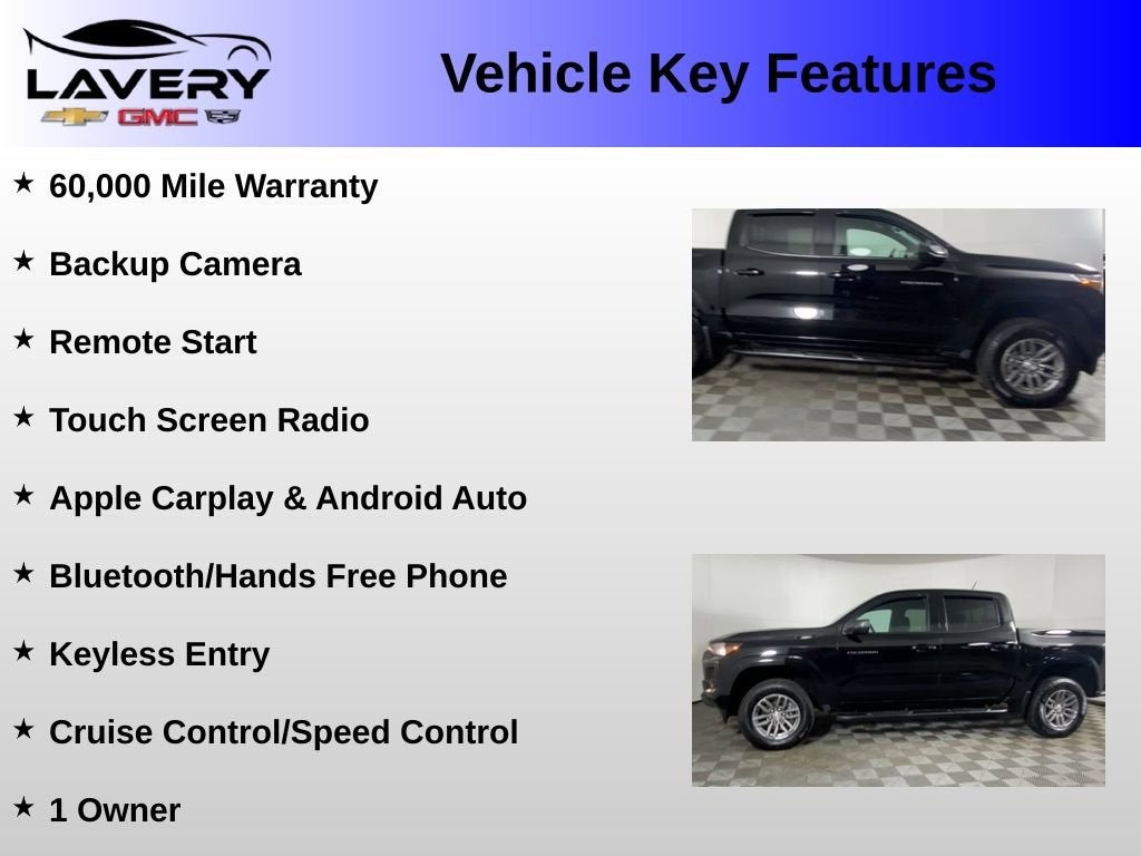 Dependable, capable, and well equipped, this **2023 Chevrolet Colorado 4WD LT Crew Cab** is an excellent choice for anyone looking for a truck that’s ready for both work and play. Visit **Lavery Automotive** or call **(330)-800-4048** to schedule your test drive today!