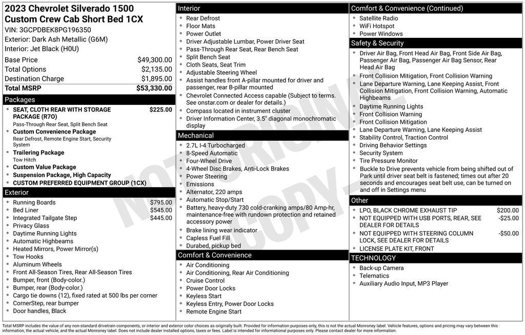**For Sale: 2023 Chevrolet Silverado 1500 Crew Custom 4WD with features such as *Cruise control/Speed control*, *Bluetooth®/Hands free phone*, *Remote start*, *Rear view camera*, and much more listed below!!**